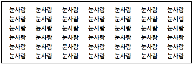 1) 아래 이미지 속 '눈사람' 이 아닌 단어가 모두 몇 개인지 맞혀주세요!