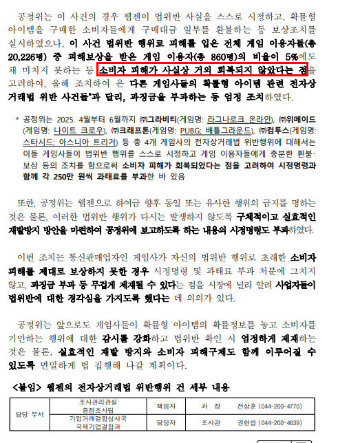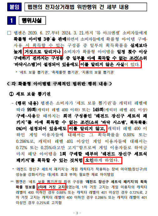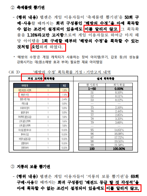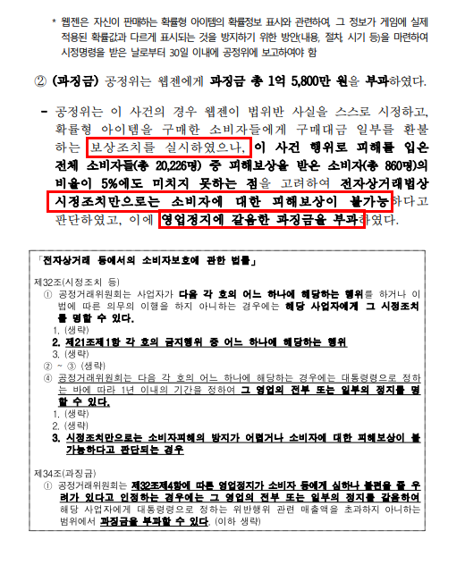 [결과발표] ㈜웹젠의 확률형 아이템 소비자 기만행위 제재