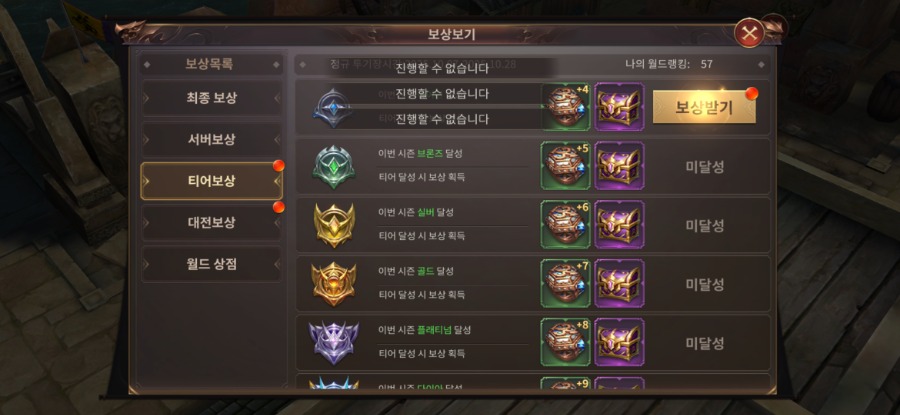 게임을 완전히 종료 후 재접속하여 티어보상을