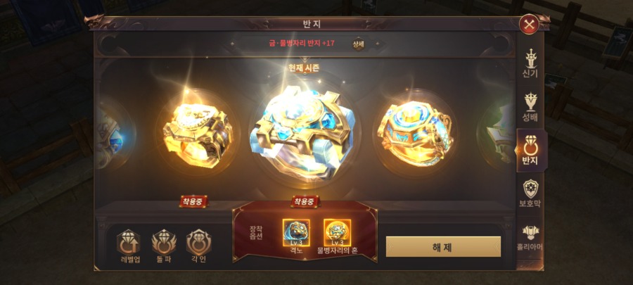11월 시즌이 제대로 해제가 안되어서 반지 장착이 겹쳐요..