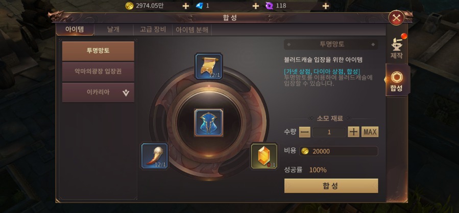 합성하기/인벤정리/창고확인/그림자밝기게임은?