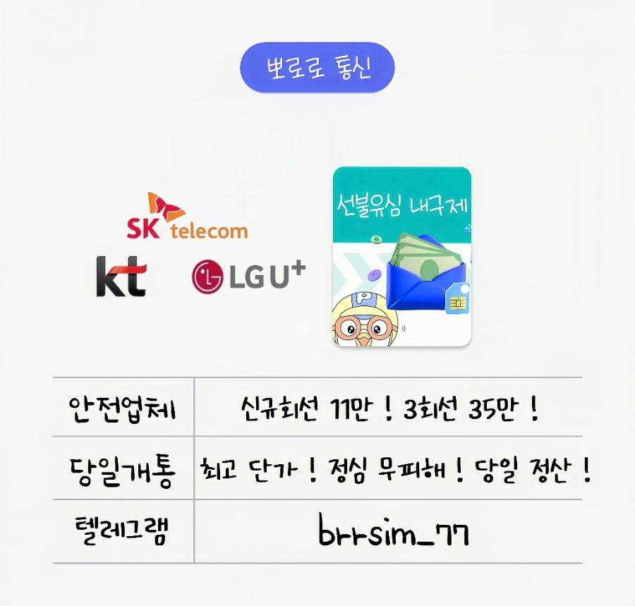 뽀로로 통신은 선불유심 내구제와 소액대출 서비스를 전문으로 제공하는 저희 플랫폼은 고객님들의 긴급한 자금 문제를 빠르고 효율적으로 해결할수 있도록 최선을 다하고 있습니다 https://brrsim77.isweb.co.kr